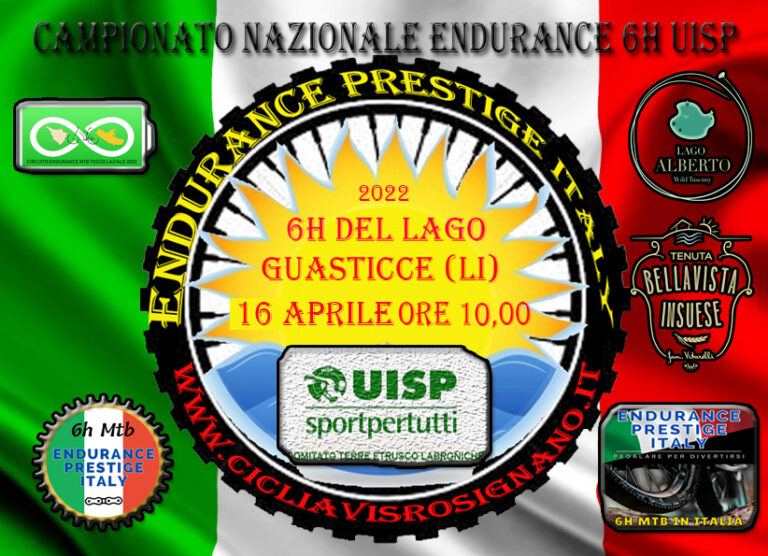 Nella splendida cornice del Lago Alberto e della Tenuta Insuese a Guasticce (LI) sabato 16 aprile andrà in scena la 6h del Lago, una gara di endurance in mountain bike organizzata dal Comitato Terre Etrusco-Labroniche della UISP in collaborazione con ASD Avis Ciclismo Rosignano. Questa manifestazione, valida come prova unica del Campionato Nazionale Endurance UISP e come prova inaugurale del circuito Endurance Tosco Laziale, sarà la prima storica tappa del circuito Endurance Prestige Italy, una serie di cinque appuntamenti in programma tra aprile e settembre per promuovere le competizioni di endurance in mountain bike organizzate sul territorio nazionale. Il motto è “pedalare per divertirsi“, mettendo sempre al primo posto lo spirito di aggregazione e i sani valori del mondo dello sport.