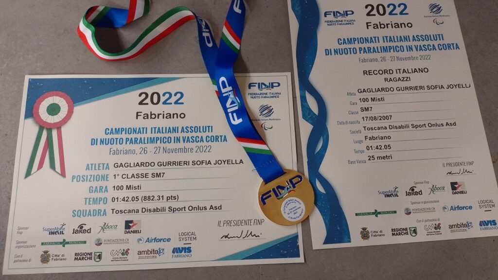 Ciononostante, Sofia si cimenta nei 50 stile libero e 100 misti segnando in entrambi il nuovo record italiano categoria ragazzi (classe S7 per sl e SM7 per misti), e Pietro nei 100 stile libero, conquistando il record italiano categoria ragazzi, classe S4, dopo che già il 6 novembre scorso aveva conquistato a Livorno quello dei 50 stile libero, e nei 50 rana, migliorando il proprio personale di 3 secondi e sfiorando il record italiano per soli 6 centesimi!
