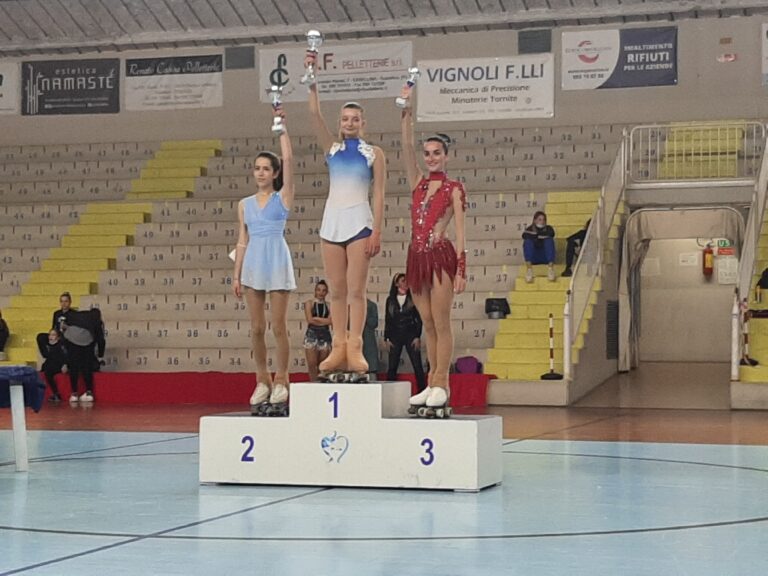 Si sono svolti al palazzetto dello sporti di Scandicci i campionati regionali di Formula dove le pattinatrici labroniche sono salite sul podio. Nella Formula “6B” argento per Viola Guillet (La Cigna Gymnasium) e nella categoria Formula “5B” Giuliana Perfetti ha conquistato il bronzo. Nella Formula “4B” un bel 4° posto per Vittoria Pireddu (La Cigna Gymnasium), 16° posto per Nicole De Bellis (La Rosa), 18° posto per Anna Pisano (La Rosa), 28° posto per Viola Menicagli (La Stella), 31° posto per Federica Ricciardi (La Rosa) e 32° posto per Yoeily Cordero Sanchez (La Rosa).