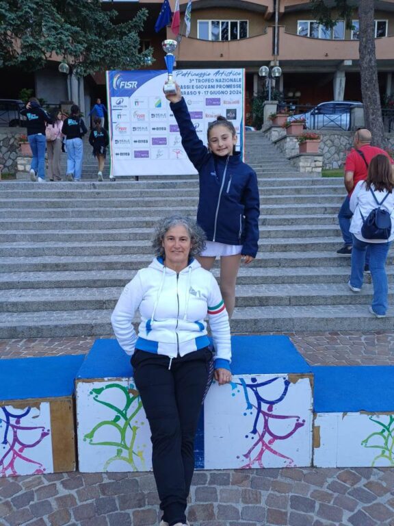 Stessa situazione nel pomeriggio per Vittoria Cerase, classe 2013, categoria Giovani Promesse 4, che ha ottenuto un fantastico quinto posto lottando fianco a fianco con atlete di altissimo livello nella sua batteria e riuscendo a presentare un programma pulito, veloce e ben interpretato, che ha fatto si che abbia superato molte delle sue avversarie. Soddisfatta l’allenatrice che le ha accompagnate in gara, la pluricampionessa mondiale Letizia Tinghi insieme al Consigliere Federal e presidente della Polisportiva La Rosa Livorno, Mario Tinghi.