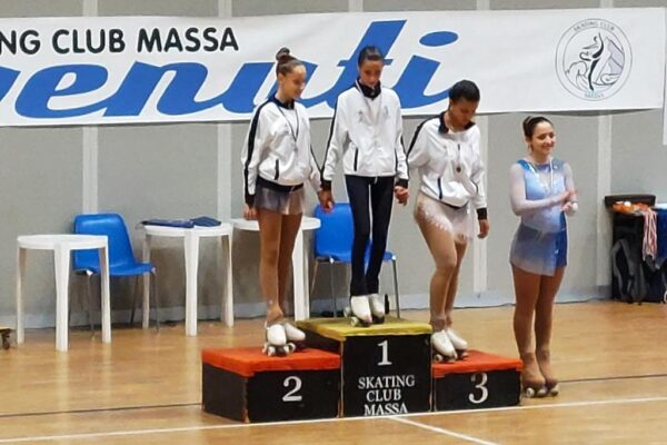 A Massa le pattinatrici del circolo polisportivo La Rosa si sono rese protagoniste della gara regionale con 2 ori, 2 argenti e 2 bronzi, nelle varie categorie di Divisione nazionale. Cominciamo con la “A” dove Azzurra Allegranti ha messi tutti dietro dopo un’interpretazione magistrale. Al secondo posto Matilde Faccin, al 3° posto Yoeily Cordero Sanchez .