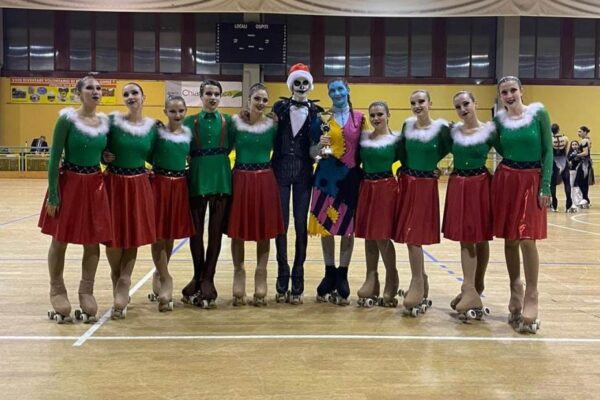 Il gruppo ‘Khaos’ stupisce ancora e conquista il cuore del pubblico e della giuria ai campionati di pattinaggio Uisp Nazionale fase 2 Toscana gruppi folk, valevoli per il “Memorial Glauco Cintoi”. Domenica la giornata di gara al palazzetto dello sport di Calenzano ha visto la partecipazioni di numerosi atleti e tra questi gli 11 pattinatori e pattinatrici della società La Stella di Livorno che hanno creato il gruppo Khaos: con la loro interpretazione di “Nightmare Before Christmas”, i livornesi hanno conquistato i cuori del pubblico e la stima della giuria di gara. Un’esecuzione piena di emozione e coinvolgimento, che ha fatto emergere la passione e l’impegno che questi atleti e le loro allenatrici hanno investito in questo progetto, allenandosi giorno dopo giorno sulla pista di viale Nazario Sauro con determinazione e dedizione. Un lavoro che ha permesso di costruire un programma che domenica ha raggiunto punteggi da capogiro: 7.7 e 8.0 per movimento d’insieme, coreografia e interpretazione, grazie ai quali il gruppo Khaos ha conquistato il gradino più alto del podio.