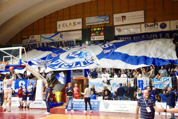 In una serata dove la Caffè Toscano manda in doppia cifra ben sei giocatori il PalaMacchia si trasforma in una Bombonera biancoblù, si accende la festa stile capodanno con trenini e vuvuzela. Il campo dice +26, la classifica dice primato. Mammamia che Pielle!