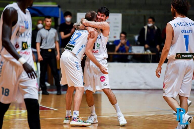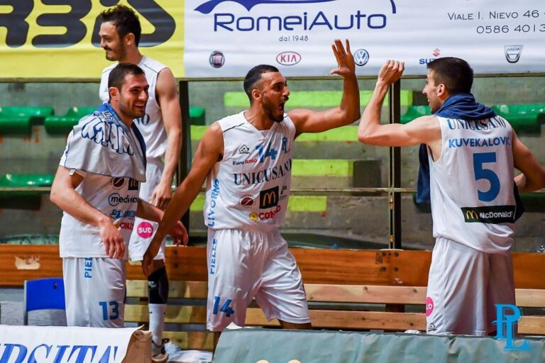 Parte la festa. Attesa. Sperata. Cercata. Meritata. Le lacrime a bordo campo del capitano Francesco Burgalassi (uno che in vita sua ha vestito sempre e solo la maglia della Pallacanestro Livorno…) racchiudono l’essenza di un progetto che parte da lontano e che, quest’anno, ha trovato solidità grazie all’ingresso di numerosi partners livornesi e soprattutto del dottor Stefano Bandecchi in qualità di title sponsor con la sua meravigliosa Università Niccolo Cusano.