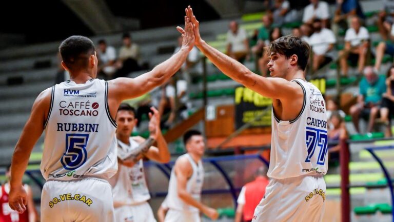 CAFFÈ TOSCANO: Pagani 8, Laganà 1, Rubbini 5, Lo Biondo 13, Manna 8, Cristofani 2, Dadomo 3, Ferraro 10, Chiarini 10, Campori 17, Diouf 7. All. Cardani.