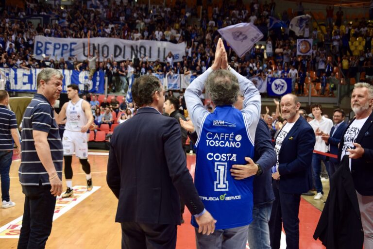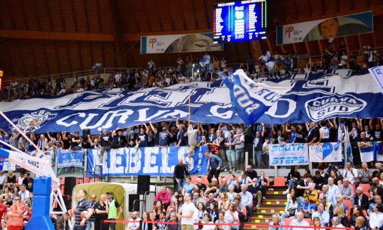 Il pubblico Pielle 10 – Per una volta vogliamo infrangere il tabù del 10 che, seguendo i dettami del vangelo secondo Buffa, si dà solo a Michelle Pfeiffer, ai contropiedi di Kobe Bryant e alla Nutella. Questa volta il pubblico piellino si merita un 10 tondo tondo, il massimo in pagella. E se lo merita per aver esagerato. Chiaramente nel senso buono. Riuscendo nell’impresa di riempire quasi il Modigliani Forum da solo. Oltre cinquemila presenze, fiato in canna fin dal pre-partita quando “ha accolto” facendo gli onori di casa Montecatini e i suoi tifosi, fino all’ultimo secondo dell’overtime e oltre. Sempre, sempre, sempre ma aiutateci a dire sempre, su di giri. Cori, mani spellate, tutti in piedi. Ma quello che sconvolge (ormai ci stiamo abituando ma ricordiamo a tutti che siamo in serie B), è che tutti e dico tutti cantano. Non solo la Curva che è un muro biancoblu. Dall’over 70 al bimbo di 4 anni: tutti hanno una sciarpa al collo (impressionante, non ce n’è uno che sia sfornito) che stendono fieramente ondeggiando al momento della sciarpata colorando il Palazzo. È l’orgoglio che trabocca. È un senso di appartenenza infinito che raramente si ritrova in qualche altra tifoseria. Stasera il popolo Pielle ha trascinato per mano la squadra non facendogli sentire la fatica dell’overtime. Volevano il primato. E lo hanno portato a casa con tutte le corde vocali a loro disposizione. SOLO APPLAUSI