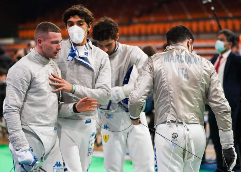 Tabellone non semplice quello degli azzurri che già nel nei 16 vede opposta la formazione ungherese, un “classico” della sciabola che vede Pietro e compagni imporsi con un sudato 45-39.