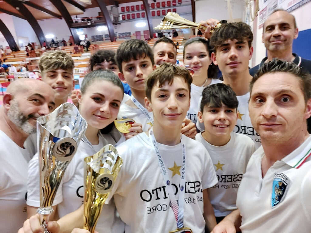 Gli atleti in “blu/azzurro” (i colori di Forza Armata) rappresentati dal settore giovanile “i folgorini” – istituto dall’anno 2006 – , sono stati i testimonial dello sviluppo del karate all’interno della Forza Armata nonché i protagonisti della competizione internazionale “𝟰𝘁𝗵 𝗞𝗢𝗡𝗝𝗜𝗖𝗘 𝗛𝗢𝗥𝗦𝗘 𝗖𝗨𝗣, svoltasi lo scorso sabato 7 maggio presso l’impianto sportivo di Konjice in Slovenia. Dal comitato organizzativo della manifestazione, sono stati registrati 76 club, provenienti da 8 paesi esteri e, un totale di 550 atleti.
