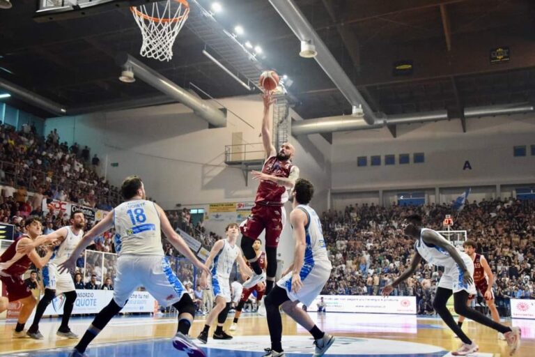 Il PalaMaggetti è un inferno. Ed è una trappola mortale se non ci entri con il giusto piglio che solo Livorno e la sua gente può dare. Fuori, Roseto è addobbata a festa. Ci sono bandiere e festoni in tutta la città: “Tutti al Palazzo”. I cori dei tifosi riempiono sdraio e ombrelloni sin dal pomeriggio. Una piccola città che vive di mare… e di basket. Ma il PalaMaggetti è un dannato inferno in questo 12 giugno 2024. Ci saranno 40 gradi dentro. Forse di più. Non c’è un filo d’aria e il tasso d’umidità sembra quello di una foresta tropicale dopo un’acquazzone. E poi c’è il cuore che va forte perché c’è un appuntamento con la storia da onorare. Non c’è più tempo per morire, recitava un Fabrizio Pucci d’annata in altro contesto sportivo ma egualmente epico.