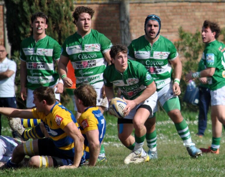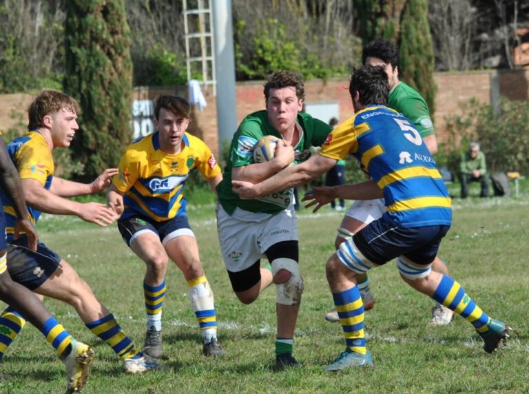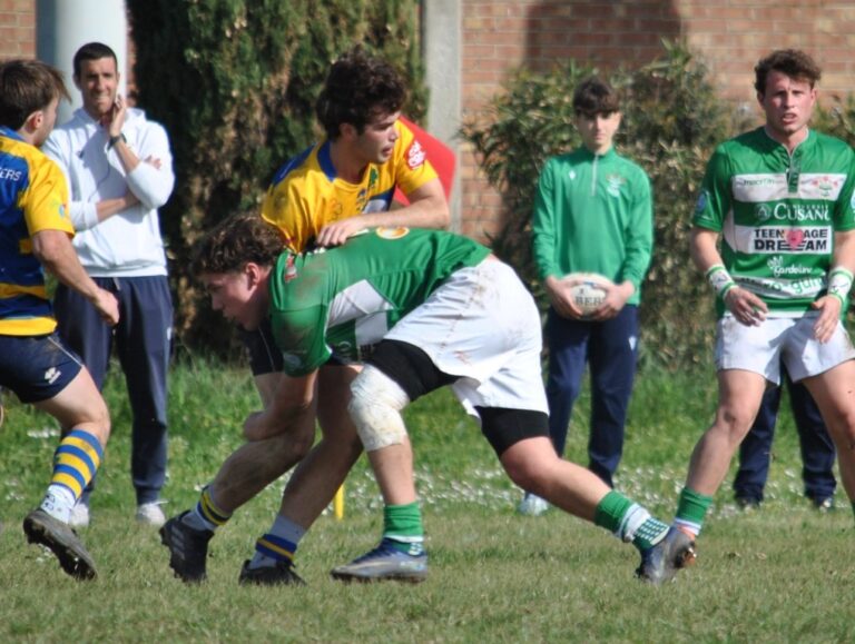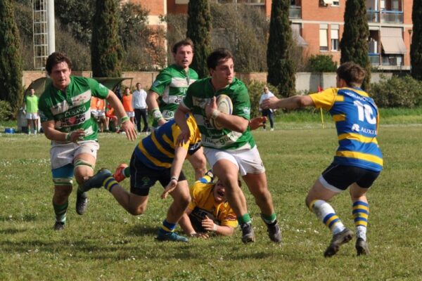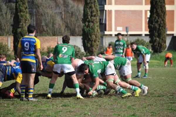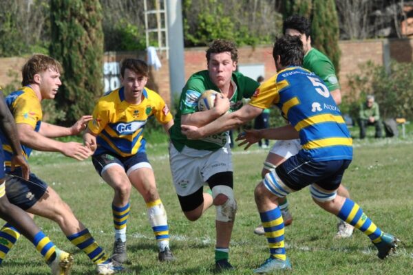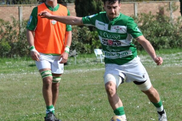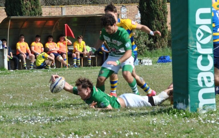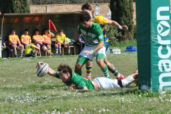 Biancoverdi con titolari ben tre elementi del 2005 (il centro Giunta, il flanker Gambini e il tallonatore Giammattei) e due classe 2004 (l’ala Casini e il mediano di mischia Rossi). Ben presto in campo, sui trequarti, un altro classe 2005, Fedi. Nella ripresa, spazio gli avanti Raffo (del 2005) e Brasini (del 2006). La partita dei locali inizia con il piede giusto. Già al 2’ l’attivo centro classe 2002 Leonardo Cristiglio sblocca la situazione, depositando in meta. Il talentuoso mediano di apertura classe 2000 Rocco Del Bono (7/7 per lui nei tiri da fermo) arrotonda con la trasformazione. Bello l’attacco che consente al 13’ al prezioso Tommaso Casini di siglare la seconda meta della propria squadra. Del Bono trasforma: 14-0. Poche le emozioni nella parte centrale del primo tempo. Al 33’ ulteriore allungo biancoverde, grazie alla prima meta personale del terza linea Emanuele Piras (classe ‘99; tra i più ‘vecchi’ in rosa e tra i migliori anche stavolta). Del Bono trasforma: 21-0. La meta-bonus viene realizzata dal diciannovenne Edoardo Giammattei, autore di una prova ricca di sostanza. Del Bono trasforma: all’intervallo, sul 28-0, il quadro è abbondantemente delineato.