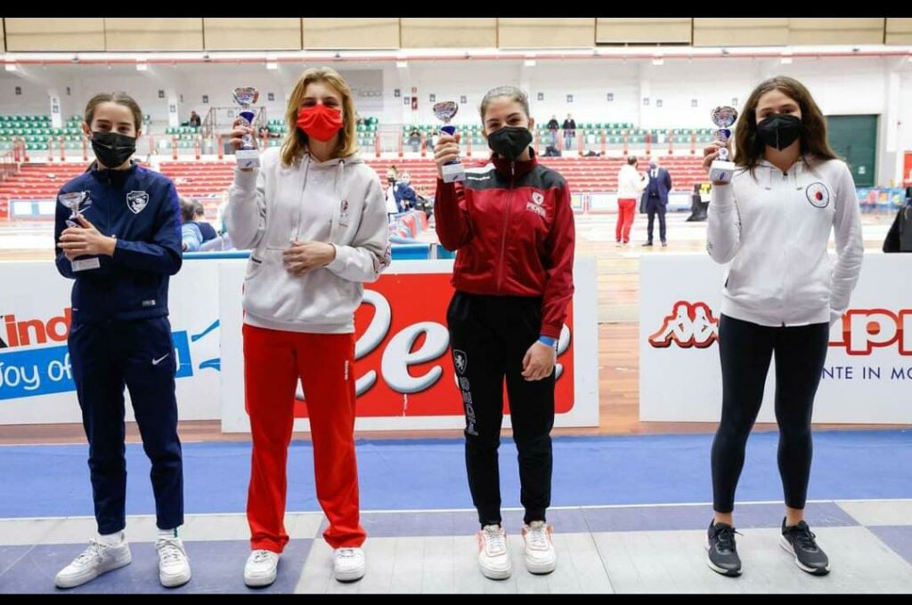Nella categoria Allieve, 7° posto per Dalia Rinforzi che si conferma tra le prime della categoria un’ottima gara quella di Dalia, che chiude ai piedi del podio. Un vero peccato per Giorgia Ruta che termina al 11° posto. L’atleta più quotata della categoria esce così di scena troppo presto per una sola stoccata. Ludovica Fannelli chiude invece nel tabellone dei 32 con una buona prova che dimostra una crescita costante.