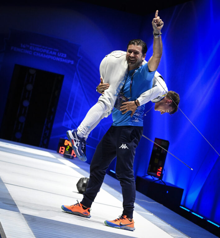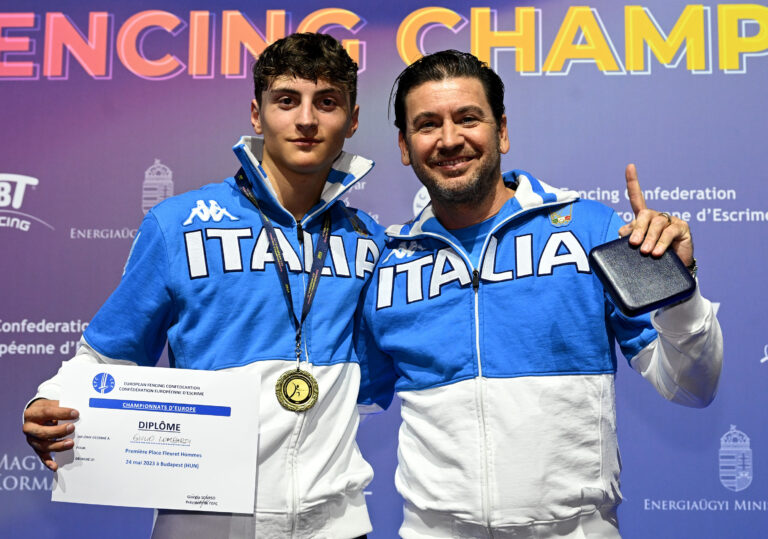 “Giulio è l’allievo che auguro di avere ad ogni maestro – spiega entusiasta Beppe Pierucci – Serio, preparato, tecnicamente e tatticamente geniale, con la maturità giusta per fare il grande salto. E questo risultato è figlio di un lavoro collettivo che stiamo svolgendo da anni e che coinvolge tutto il Circolo Scherma Fides a partire da Angelo Carnemolla, il nostro guru mentale, fino ad arrivare a Renato Burani, il nostro preparatore atletico. Ma un grande grazie va anche alla Federazione nella persona di Stefano Cerioni (cittì azzurro del fioretto, ndr), che lo ha coinvolto nei collegiali e nelle prove di coppa del mondo assolute dove Giulio ha saputo già dire la sua. Un grazie anche a Carolina Erba delle Fiamme Gialle che ha creduto in questo ragazzo fiutandone subito le grandi potenzialità. Vincere poi contro il campione di casa, l’ungherese Szemes che sta già facendo molto bene in coppa del mondo assoluti, e tirare con tutto il tifo contro, è stato davvero fantastico. Ma devo essere onesto, questi azzurri under 23 sono davvero un gruppo fantastico e lo stanno dimostrando anche fuori dalla pedana. Ed è questo che poi fa la differenza”.