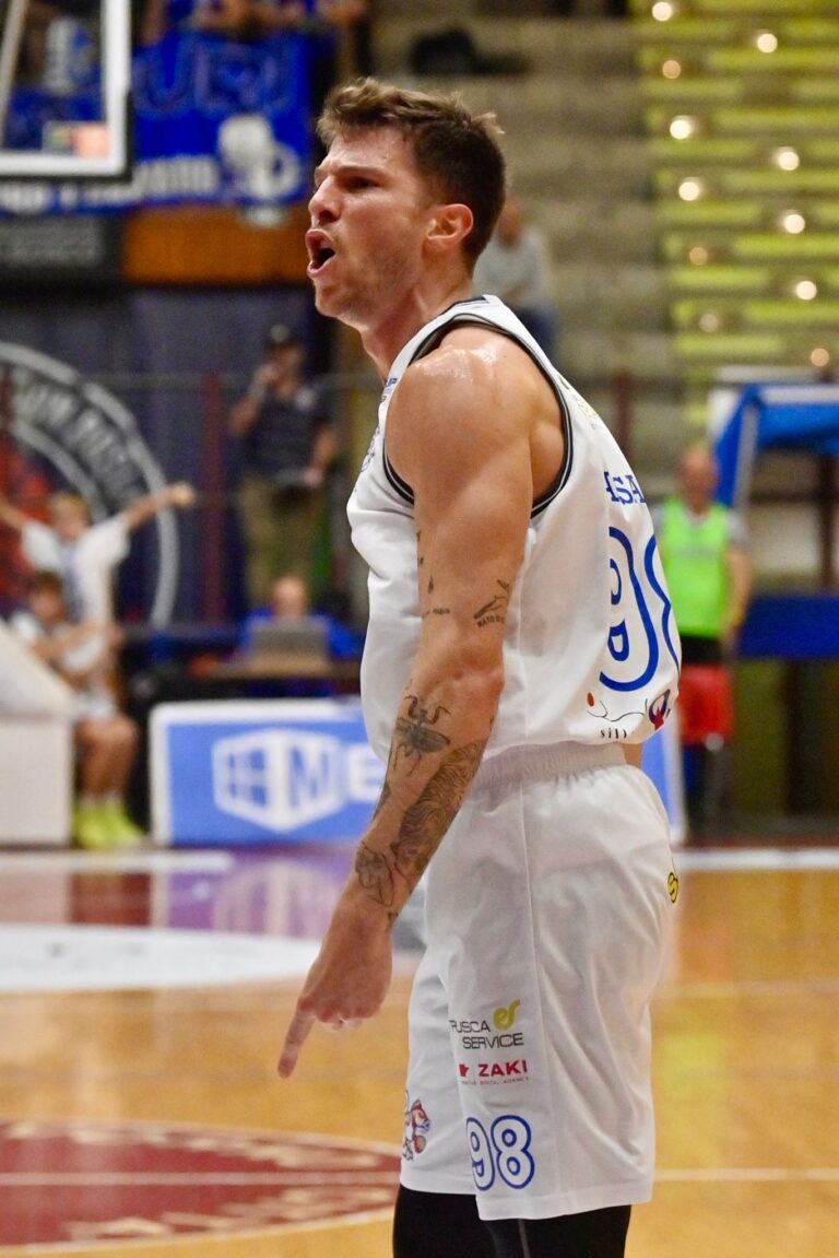 I biancoblu di Campanella tornano a vincere davanti al proprio pubblico con una bella prestazione corale costruita anche grazie ad una grande difesa contro uno dei migliori attacco del campionato (clicca qui per la classifica). Partono forte gli ospiti che mantengono i padroni di casa sotto fino al 16esimo quando una tripla di Venucci (strepitosa la prestazione dall’arco per il numero 11 biancoblu che chiude con 5/6 e 17 punti segnati) riporta sopra i suoi 29-28. Da lì punto a punto fino al terzo quarto con un Leonzio che si porta sulle spalle la squadra. Terzo quarto che si chiude sul 48-48. Ed è negli ultimi 10 minuti che i biancoblu trovano la spinta finale per allungare definitivamente. Si chiude sul 72 a 61 con un Bonacini in grande spolvero negli ultimi 10 minuti. Vittoria di spessore contro un avversario tosto e mai domo fino agli ultimi secondi.