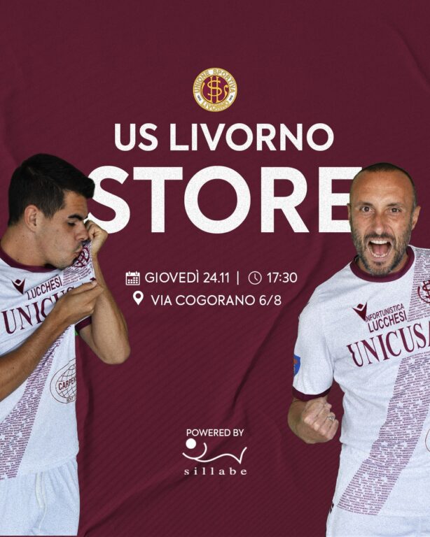 La casa editrice Sillabe e l’Unione Sportiva Livorno 1915 sono lieti di annunciare l’apertura dello store nella città di Livorno, in via Cogorano 6/8, dedicato al merchandising ufficiale della squadra amaranto. Il negozio è stato sviluppato con l’obiettivo di diventare un punto di riferimento per tutti i tifosi amaranto e non solo. Il design e l’allestimento, realizzati da Opera Laboratori, sono stati concepiti sia per rappresentare i valori del club nel migliore dei modi sia per realizzare un punto vendita innovativo per i tanti prodotti disponibili e per la nuova linea di merchandising, ideata appositamente da Sillabe con un concept definito in accordo con l’Unione Sportiva Livorno 1915. Un negozio che va anche oltre i confini della città e si apre alla Toscana e alla valorizzazione della sua cultura e del suo territorio: sarà quindi possibile trovare anche merchandising ed editoria museali legati ai più importanti musei come Le Gallerie degli Uffizi, la Galleria dell’Accademia di Firenze, il complesso monumentale del Duomo di Siena, i musei civici di San Gimignano, ecc. L’inaugurazione è fissata per giovedì 24 novembre alle 17,30: saranno presenti Luca Salvetti, sindaco di Livorno, Daniele Petrucci, amministratore unico di Sillabe, Igor Protti, direttore generale dell’Us Livorno, Fabio Discalzi, responsabile organizzativo e marketing dell’Us Livorno, e alcuni giocatori della prima squadra amaranto.
