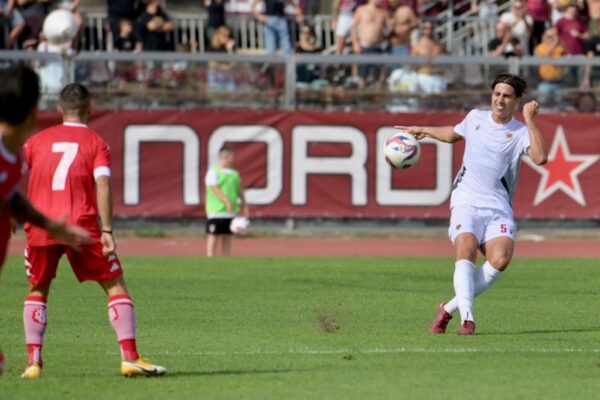 Un primo tempo che si fa subito in salita per gli amaranto. È infatti Sabelli a sbloccare il match e a portare avanti i suoi dopo neanche dieci minuti grazie ad un perfetto inserimento che non lascia scampo a Biagini. Gli uomini di Favarin provano a reagire ma sono gli ospiti a fare la partita e a sfiorare il raddoppio con Marzierli, il quale colpisce di testa a botta sicura ma trova la gran risposta di Biagini. Poco più tardi è Giustarini a trovare il raddoppio sul secondo palo ma il guardalinee segnala l’offside del numero 7 maremmano. Poco da segnalare per gli amaranto, se non per gli infortuni in corso d’opera di Mutton e Frati.