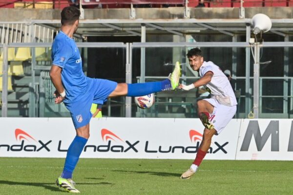 Bellini centra per l’inserimento di Currarino, pessimo colpo di testa del 32 amaranto che devia sul fondo |