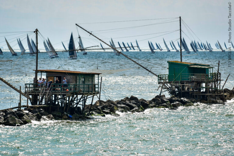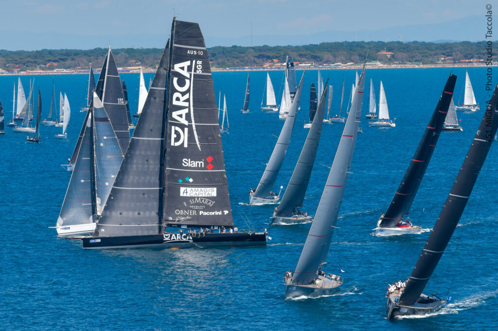 Circa 12 nodi di vento da Nord Est con un sole splendente, le perfette condizioni meteo che la flotta ha affrontato per le prime miglia di navigazione, una rotta che dopo lo start al largo di Livorno, ha portato le barche ad affrontare una boa a Marina di Pisa (in palio il Trofeo Città di Pisa), passaggio obbligato prima di prendere il largo verso l’isolotto della Giraglia, la successiva discesa alle Formiche di Grosseto (lasciando l’Elba a sinistra) e l’arrivo a Punta Ala, dove le barche più grandi e veloci sono attese dalle prime ore di domani, lunedì.