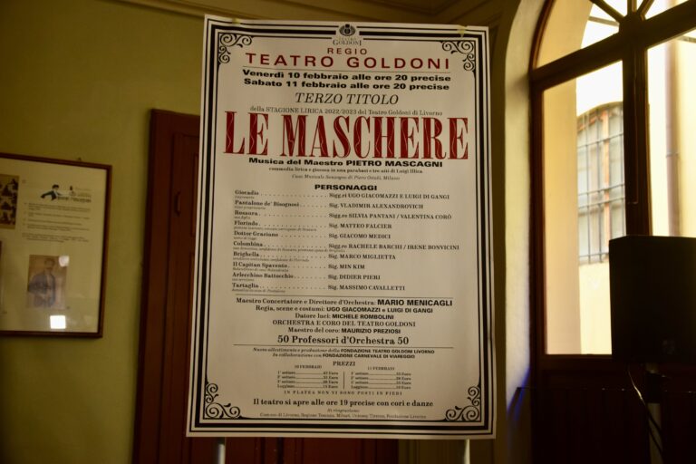 “Le Maschere” di Pietro Mascagni torna a Livorno dopo 20 anni. La celebre opera lirica animerà, di nuovo, gli spazi del Teatro Goldoni a distanza di 40 anni. Un imperdibile appuntamento, in programma venerdì 10 e sabato 11 febbraio alle 20, per la regia di Luigi Di Gangi e Ugo Giacomazzi. “Due serate a cui teniamo moltissimo – commenta il direttore amministrativo della Fondazione Goldoni Mario Menicagli, per l’occasione anche direttore d’orchestra – Perché parliamo di una produzione interamente nostra, anche per quanto riguarda l’allestimento. Un’opera buffa e giocosa, decisamente particolare”. Tantissime le collaborazioni che contribuiranno ad animare la serata, a partire dalla più ovvia, quella con la Fondazione Carnevale di Viareggio, per arrivare fino agli alunni dell’indirizzo musicale e coreutico del Liceo Niccolini Palli, che si esibiranno prima e durante lo spettacolo insieme al coro Spring Time e Monday Girls, e ai giovanissimi spettatori della scuola primaria Carducci reduci dal progetto “Un banco all’opera”. “Noi siamo due registi di teatro di prosa – spiega Di Gangi – quando ci hanno proposto questa avventura siamo rimasti contenti, ma non conoscendola ci siamo approcciati lentamente e con qualche difficoltà. Poi ci siamo fatti coinvolgere dalla musica mascagnana e ce ne siamo innamorati. Inizialmente volevamo lavorare su una scena vuota per far risaltare le maschere, poi c’è stata l’occasione di visitare Viareggio, abbiamo visto come nascono e prendono forma i carri dentro ad alcuni hangar che ricordano molto il palcoscenico. Quindi abbiamo voluto simulare la cosa per la nostra serata, dove costruiremo il nostro carro”. “Le maschere – aggiunge Giacomazzi – sono l’origine del teatro. Un’arte su cui i commedianti di un tempo hanno investito tutta la propria vita, una tradizione antichissima. Abbiamo costruito lo spettacolo in modo che lo spettatore si senta dentro, coinvolto, speriamo di esserci riusciti”. Questo il cast completo: Giocadio, impresario Luigi Di Gangi / Ugo Giacomazzi, Pantalone de’ Bisognosi, ricco proprietario Vladimir Alexandrovic, Rosaura, sua figlia Silvia Pantani / Valentina Corò, Florindo, giovane laureato, amante corrisposto di Rosaura Matteo Falcier, Dottor Graziano, uomo di legge Giacomo Medici, Colombina, sua domestica, confidente di Rosaura, promessa sposa di Brighella Rachele Barchi / Irene Bonvicini, Brighella, venditore ambulante, confidente di Florindo Marco Miglietta, Il Capitan Spavento, Balandrano di casa Balandrana Min Kim, Arlecchino Battocchio, suo servitore Didier Pieri Tartaglia, domestico in casa di Pantalone Massimo Cavalletti, light designer Michele Rombolini, Orchestra e Coro del Teatro Goldoni diretto dal Maestro Maurizio Preziosi.