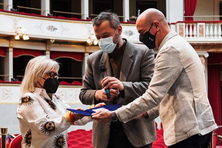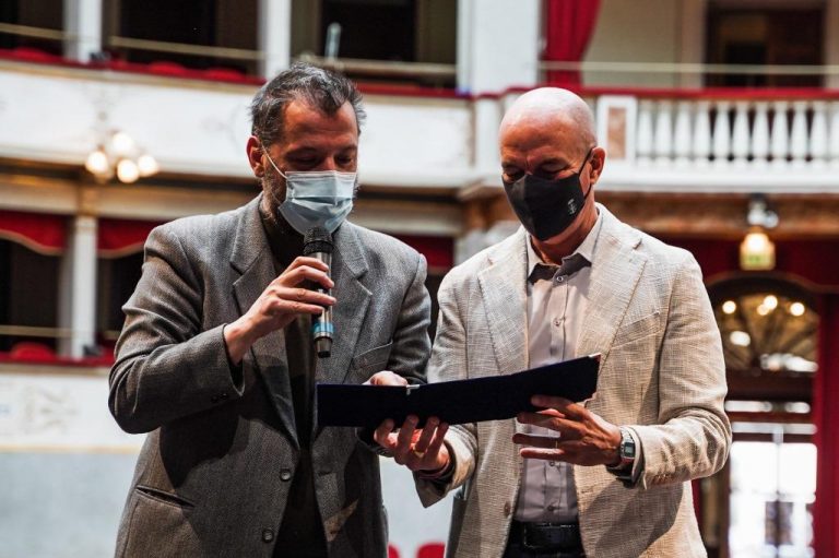 Dopo la premiazione di tre colonne portanti del Teatro della nostra città, scelti come testimoni del teatro livornese, come Marco Bertini, Giovanni Lippi e Giuseppe Pancaccini, è lo stesso Salvetti a proseguire: “Credo che sia doveroso riconoscere il lavoro di chi, prima di noi, negli anni si è speso umanamente e professionalmente a favore del teatro livornese. Sono dei modelli dai quali trarre esempio. Per quando riguarda il presente, è bello vedere tutto questo attivismo del Teatro Goldoni, anche e soprattutto nel periodo che stiamo vivendo, perché è facile fare progetti in condizioni di “normalità” mentre è molto più complicato farlo in situazioni come quella dei nostri giorni. Il Teatro Goldoni invece è riuscito in tutto ciò, permettendo a tante maestranze di lavorare indipendentemente dalla pandemia”.