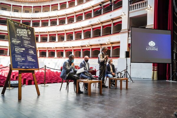 Fondazione Goldoni ha presentato il 1 giugno “Usciamo a riveder le stelle” e “Palcobaleno“, ricco cartellone di spettacoli estivi dislocati tra Teatro Goldoni e Fortezze, Nuova e Vecchia (foto Amore Bianco, in fondo all’articolo il pdf con il programma). “La nostra programmazione – spiega Emanuele Gamba, direttore artistico Fondazione Teatro Goldoni – si intreccerà fra lirica, prosa, cabaret, danza, canto e musical, girerà fra luoghi e palcoscenici diversi lungo un’ideale mappa del tesoro che invita tutti a giocare e a riappropriarsi della straordinaria preziosità dell’esperienza teatrale. E con “Palcobaleno” incontreremo ulteriori tipologie di spettacoli legati al territorio con Compagnie Teatrali, Scuole di Teatro, Scuole di Danza, Laboratori, Operetta, Cori, Teatro Ragazzi”. Si inizia il 10 e 25 giugno con i primi due spettacoli di apertura al Goldoni (il 10 giugno salirà sul palco l’appassionato racconto pucciniano di Corrado Augias). La programmazione proseguirà, come detto, nel suggestivo scenario delle due Fortezze.