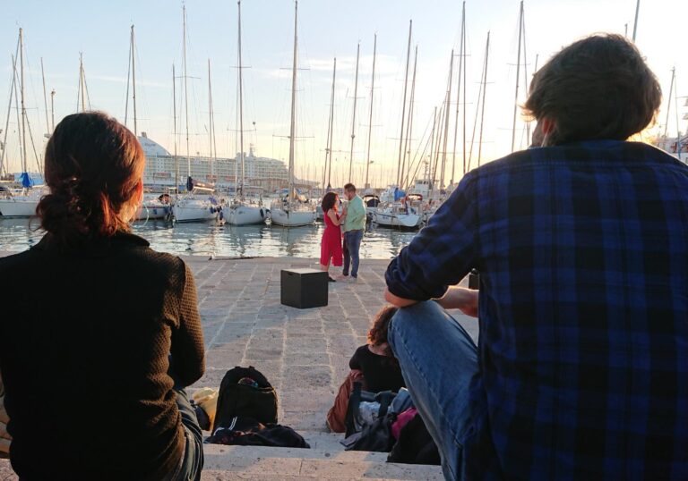 “Nella lista delle Cose Che Sappiamo Che Sono Vere c’è l’amore di questo gruppo di giovani per il teatro, c’è il loro coraggio, la loro passione, il loro ottimismo e la loro generosità. Sappiamo che fare teatro in epoca di pandemia è una forma di resistenza ed un allenamento alla speranza. Sappiamo che provare da remoto non può bastare ma che senza quelle prove e quegli incontri da novembre ad aprile non saremmo stati qui stasera. Sappiamo che non tutte le connessioni internet a Livorno sono stabili: sappiamo che qualcuno si connetteva dal garage (perché c’è più spazio!) e qualcuno dal terrazzo (perché lì prende meglio!). Adesso sappiamo che ci sono persone (almeno quattro!) che hanno talmente fame d’immaginazione e gioco da decidere di iniziare il loro primo corso di teatro con un gruppo di sconosciuti in versione online. (E li ringraziamo per essersi imbarcati su questa nave in tempesta insieme a tutti noi). Sappiamo anche che molti genitori, fratelli, sorelle, figli e nonni seduti tra il pubblico hanno dovuto convivere almeno un paio di sere a settimana per mesi con le nostre prove e probabilmente a volte avranno dovuto alzare il volume della tv per sentirla. Sappiamo che provare un mese e mezzo in presenza all’aperto, nei parchi, nelle piazze, col vento, con la pioggia, col sole rovente è molto più faticoso che avere una sala prove a disposizione… ma a volte può essere sorprendente. Sappiamo che dietro ai problemi si nascondono opportunità. Sappiamo che oggi saliamo su questo palco di fronte al mare, per la prima volta, e sappiamo che probabilmente ci saranno un sacco d’imprevisti perché in questo spazio non abbiamo mai potuto provare ed allenarci e prendere le misure… Non siamo mai potuti rientrare in teatro, neanche una volta, su nessun palco, in nessuna sala prove, da febbraio 2020. Però sentiamo che, dopo “due anni senza”, avere di nuovo un posto dove invitare il pubblico a sentire una storia è un privilegio, una fortuna e una gioia.