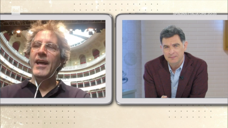 In un periodo di così prolungata chiusura – è stato argomentato nel corso della trasmissione che ha ottenuto il 18,6% di share con un milione e 219mila spettatori – il Teatro livornese è riuscito a lavorare con continuità grazie ad una programmazione offerta gratuitamente sul proprio canale YouTube e che in questi mesi ha visto impegnati i dipendenti ed i tecnici del teatro in un insolito ed innovativo tipo di lavoro: “Abbiamo fatto tante cose – ha proseguito il direttore artistico – un ciclo di concerti, 7Voci, abbiamo invitato compagnie teatrali livornesi che hanno raccontato in teatro quattro titoli del melodramma, abbiamo chiamato quattro grandi attori a narrare altrettante trame della tradizione dell’Opera e ultimo, questa iniziativa Opere in corso d’Opera che praticamente è un gioco che abbiamo voluto fare con quattro giovani registi provenienti dall’Accademia Silvio D’Amico di Roma e dall’Accademia dell’Opera lirica di Verona, a cui abbiamo dato il palcoscenico per un giorno per allestire una scena tratta da Bohème, Cenerentola, Rigoletto, Cavalleria Rusticana, ed è stato bellissimo vedere questi giovani registi all’opera emozionatissimi di tornare a lavoro dopo mesi di buio e silenzio”.