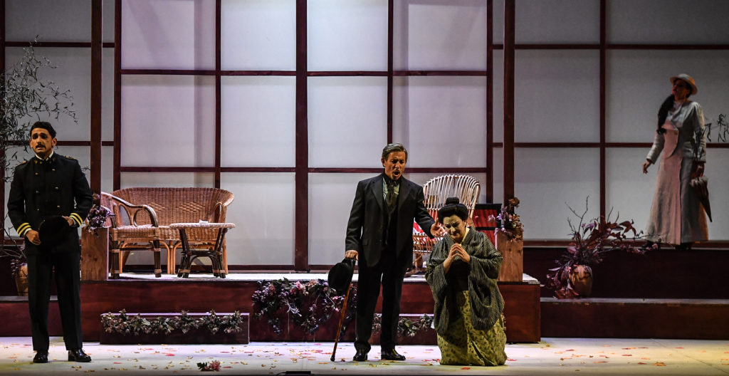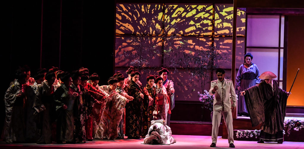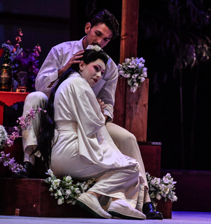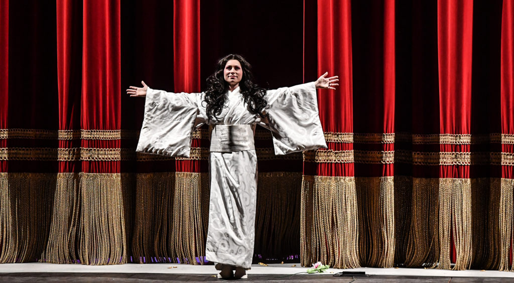 Un dramma intimista quello che vede protagonista la sventurata geisha Cio-Cio-San, una ragazza buona e innamorata ma strumentalizzata da una civiltà occidentale americana. Si tratta di Madama Butterfly, opera di Giacomo Puccini, suddivisa in tre atti, in cui risalta il protagonismo del personaggio femminile: Butterfly è, infatti, il personaggio principale, intorno alla quale ruota l’intera opera (fotogallery Augusto Bizzi del Teatro esaurito per la prima rappresentazione venerdì sera con la direzione d’orchestra di Stefano Romani e la regia di Alberto Paloscia in collaborazione con Carlo Da Prato. Alla fine tanti applausi per tutti i protagonisti).