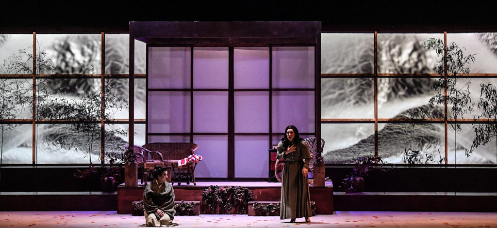 La scenografia di questa opera è un microcosmo, un mondo in cui Butterfly rimane rinchiusa, in quanto speranzosa fino in fondo del ritorno del suo amato, il quale fugge con un’altra donna e abbandona la giovane con suo figlio. A prendersi cura di lei rimarrà Suzuki, la servente della giovane. Lei ama veramente Butterfly, rappresenta la figura materna che le è sempre mancata, insieme al padre, suicida per motivi economici.