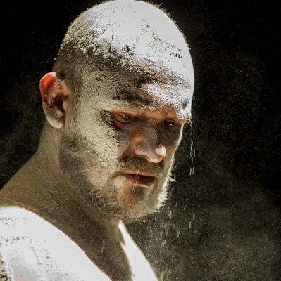 La vicenda umana e sportiva di un uomo che, da solo, ha osato sfidare la propaganda nazista con uno dei gesti più eclatanti e meno noti della storia. Un atto d’amore che si racconta sotto la pelle tragica di un’Europa sfigurata. Lo spettacolo, vincitore di numerosi premi (Roma Fringe Festival, Roma 2016, Miglior spettacolo, Miglior attore al San Diego International Fringe Festival, California-Messico 2018; Premio Rostagno dell’Accademia dell’Antimafia e dei Diritti, Miglior spettacolo, Miglior regia, Miglior attore, Miglior spettacolo Giuria Popolare, Roma 2019) invita a una riflessione sulle moderne forme di razzismo e pregiudizio, e sul rapporto che lega l’essere umano ai concetti di dignità e diversità. Un confronto tra ieri e oggi, sulle influenze del passato nel nostro tempo. Numerosi e di profondo apprezzamento i commenti della critica per questo monologo che “Affronta in modo assolutamente originale la tematica del razzismo e del pregiudizio”; “La polvere bianca che scivola via dal corpo a ogni minimo movimento è la fisicità che rifiuta costantemente l’arianizzazione, l’ignominia, l’insulto…. Rukeli è un monumento alla forza”; e ci ricorda che questo è “Un teatro necessario che nasce dall’urgenza di raccontare qualcosa che deve essere raccontato. Uno spettacolo che fa male. Tanto. E fa bene a farlo”.