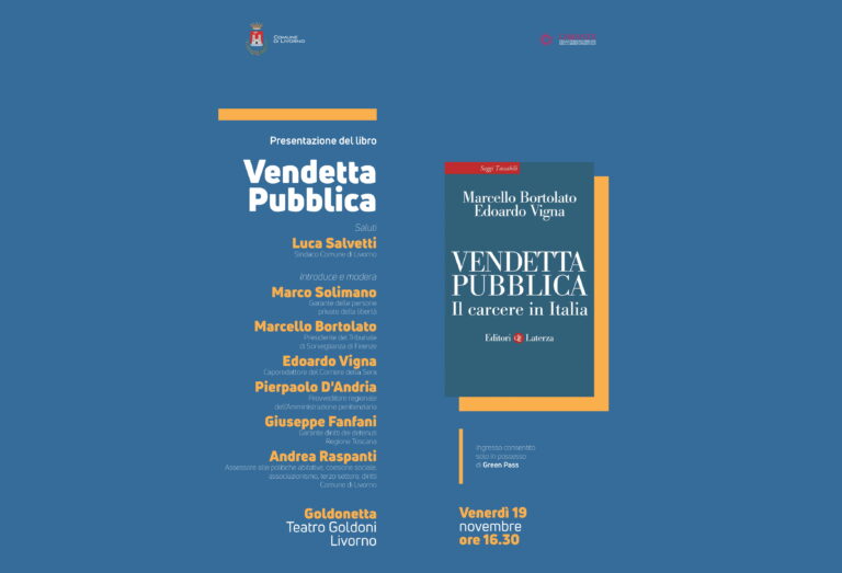 Venerdì 19 novembre alle 16.30 gli spazi della Goldonetta (Teatro Goldoni – via Mayer, 57) ospiteranno la presentazione del libro “Vendetta pubblica. Il carcere in Italia” (Editori Laterza) scritto a quattro mani dal presidente del Tribunale di Sorveglianza di Firenze, Marcello Bortolato e dal capoderattore del Corriere della Sera, Edoardo Vigna.