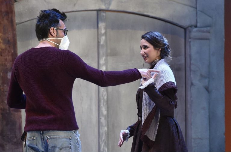 Matteo Moglianesi è il primo dei quattro registi: “Il mio lavoro riguarda il finale del terzo atto di Bohème – racconta – ed una cosa su cui mi sono soffermato è stato l’utilizzo del tempo che fa Puccini stesso: da una parte due persone che lo vivono sospeso nel ricordo dell’amore, due invece lo affrontano concretamente nella vita quotidiana. Sono partito dall’ascolto della musica, per poi passare al racconto della vicenda per riproporlo secondo quello che è il mio pensiero: da un’intuizione, un’idea, per poi declinarla e svilupparla con gli artisti sul palcoscenico. In questa messa in scena ho tenuto inoltre conto del fatto che andando in video fossero necessari dei primi piani, cosa che non avviene rispetto alla consueta visibilità a distanza del Teatro. Un’esperienza per me stimolante ed emozionante di cui sono grato al Teatro Goldoni”.