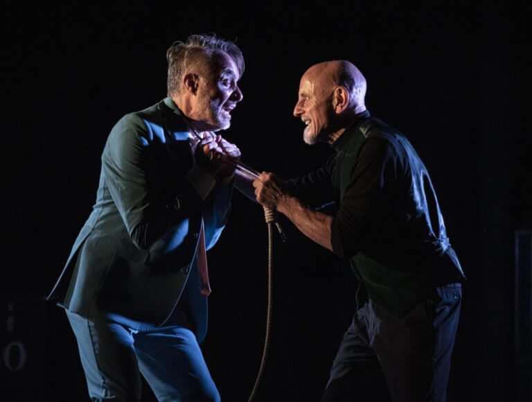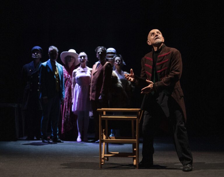 In questa riscrittura dell’Otello, ispirata al cortometraggio di Pasolini “Che cosa sono le nuvole”, il protagonista si muove in un universo teatrale decadente, in cui un novello Iago, orchestra la tragedia con toni grotteschi e surreali. Il mondo della scena si svela feroce e comico, popolato da personaggi ridicoli e corrotti, incapaci di resistere alle tentazioni della gelosia e del tradimento. I protagonisti, privati della loro eroicità, si aggirano in una corte dei miracoli fatta di inganni e vendette, come marionette recise dai loro fili si muovono in un teatro senza più un cielo a cui rivolgersi. Iago, demiurgo della scena, trasforma finzione e realtà in un groviglio  inestricabile, con parole che accendono passioni vere e conducono inevitabilmente alla tragedia . Senza divinità a regolare i destini l’universo di Otello diventa una fabula cupa, in cui il potere delle parole regna sovrano, creando epiloghi di morte e follia, in un gioco teatrale sospeso tra il ridicolo e il drammatico.