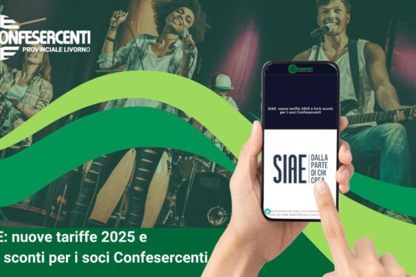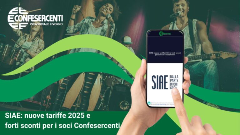 La Confesercenti Livorno ricorda a tutte le imprese che gli associati al sistema Confesercenti godono di un sistema di scontistica pari al 27% che si applica alle tariffe SIAE. Al fine di approfondire questa possibilità, gli interessati possono collegarsi alla pagina dedicata alle agevolazioni SIAE al seguente link: https://www.confesercenti.li.it/siae-nuove-tariffe-2025-e-forti-sconti-per-i-soci-confesercenti/. Per tutti gli ulteriori eventuali approfondimenti i nostri uffici rimangono a disposizione.
