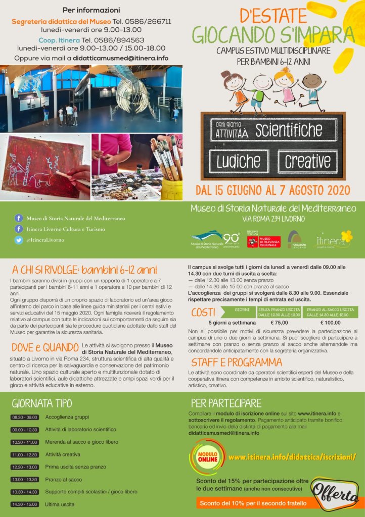 Anche per quest’anno il Museo di Storia Naturale durante il periodo delle vacanze estive organizza in collaborazione con la coop. Itinera il campus multidisciplinare per i bambini tra i 6 ed i 12 anni. Si tratta di un appuntamento ogni anno molto atteso che assume oggi una particolare importanza e significato dopo un lungo periodo di chiusura dei musei delle scuole e dei luoghi di aggregazione e incontro; molti bambini sono stati