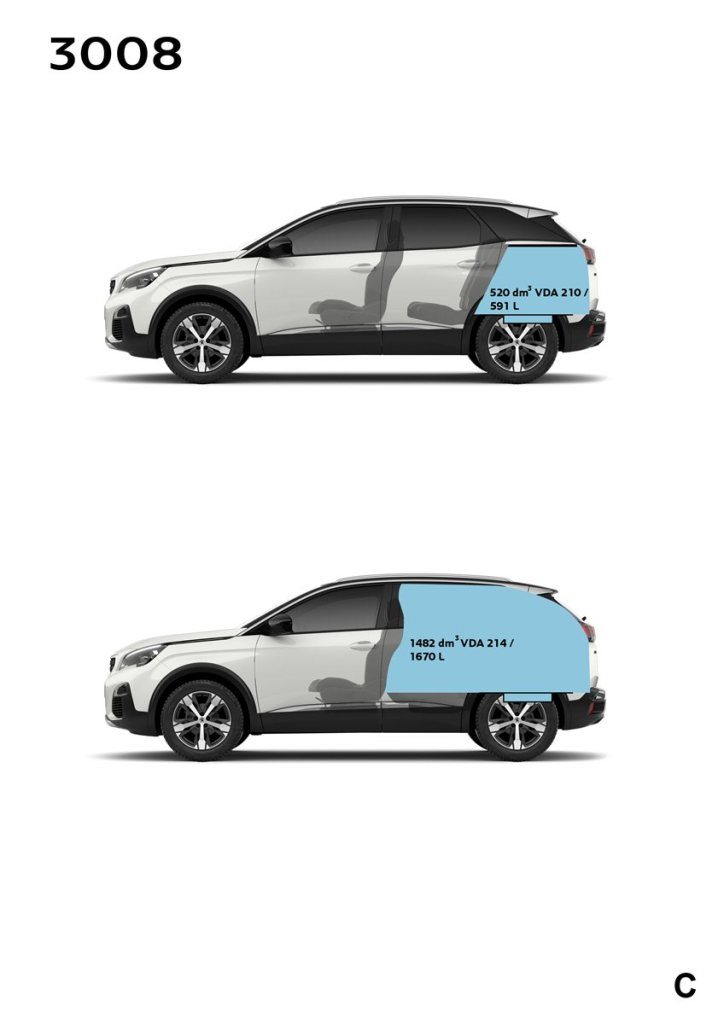 Più leggera di 100 kg ma più lunga di 8cm dal vecchio modello. Lo spazio per le persone è generalmente aumentato. Allo stesso modo il bagagliaio è ora più capiente con una capacità minima di 512 litri (90 in più) e una massima di 1.482 litri.