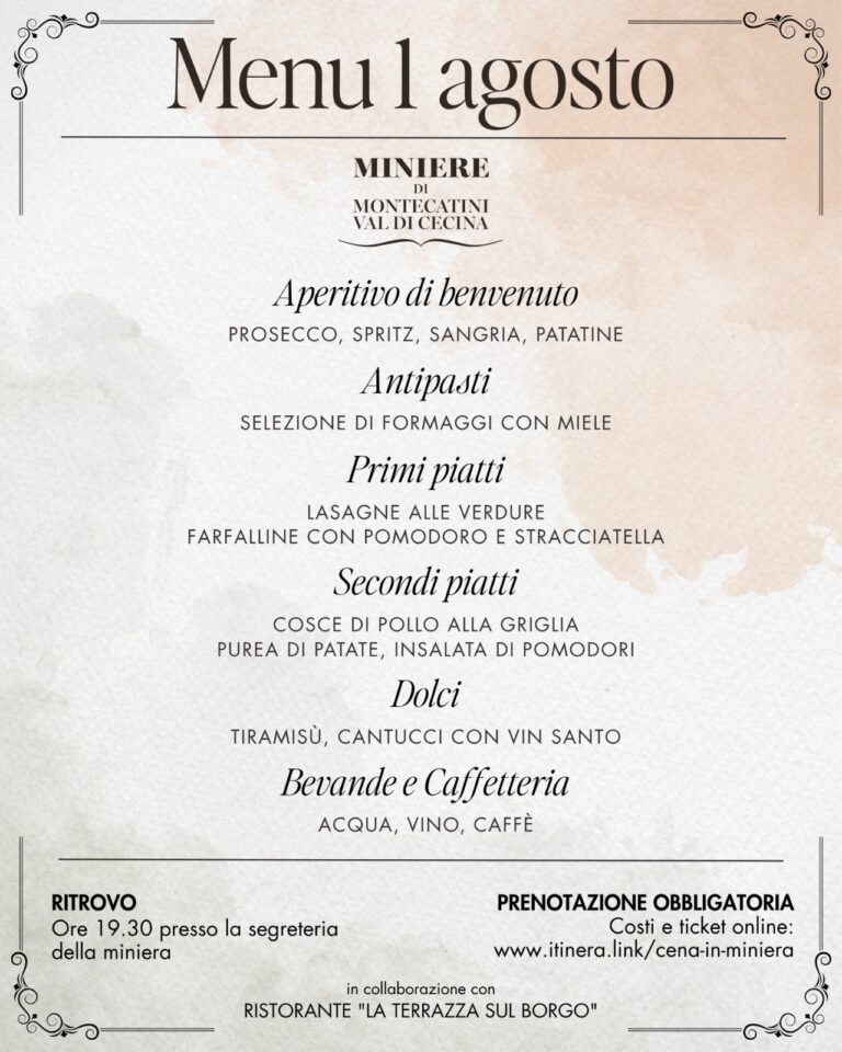 Appuntamento da non perdere venerdì 1 agosto, ritrovo ore 19.30 presso la segreteria della miniera per aperitivo di benvenuto. Prenotazione obbligatoria entro giovedì 31 luglio alle ore 13.00 tramite il link che trovate in fondo all'articolo