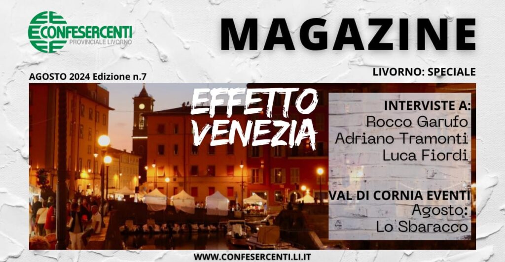 Siamo lieti di annunciare l’uscita dell’atteso numero del Magazine di agosto, disponibile gratuitamente online (https://www.confesercenti.li.it/confesercenti-magazine/) Accessibile sia tramite i social media che sul sito ufficiale dell’associazione si presenta come un prezioso strumento di consultazione ed informazione, dedicato al mondo delle imprese locali. Questo nuovo numero è dedicato principalmente ad “Effetto Venezia”, la kermesse estiva più importante della città di Livorno e non solo. Abbiamo dedicato ampio spazio a tre soggetti che, a diverso titolo, sono parte attiva di questo evento: l’assessore al commercio e turismo Rocco Garufo, il responsabile eventi della fondazione LEM Adriano Tramonti e il presidente del CCN della Venezia Luca Fiordi. Non mancano, certamente, altri eventi ed iniziative da scoprire sfogliando il Magazine, visitando la nostra pagina (www.confesercenti.li.it) o seguendo i nostri canali social media.