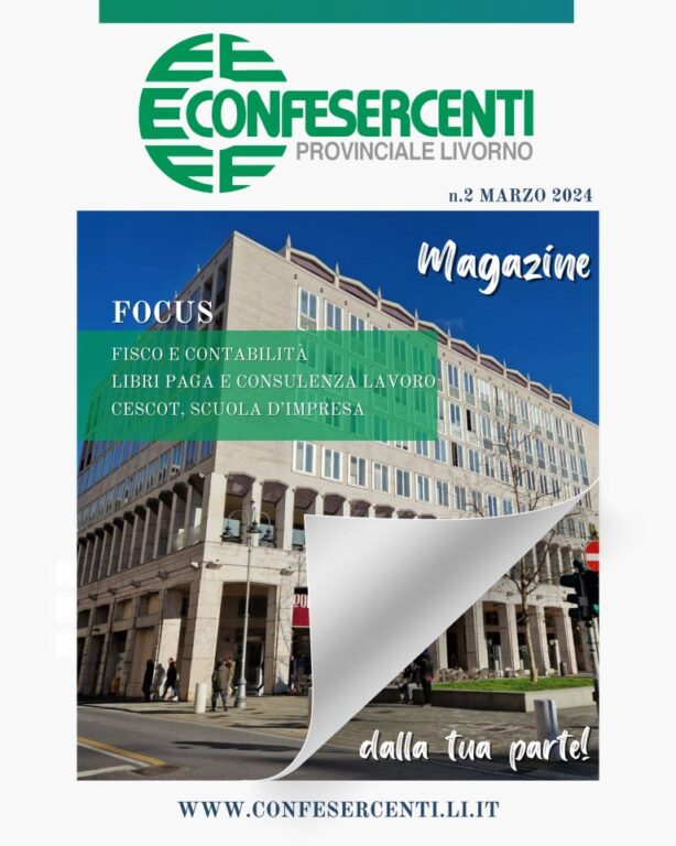 Confesercenti Provinciale di Livorno è lieta di annunciare la seconda uscita del suo attesissimo numero del Magazine di marzo, disponibile online. Accessibile sia tramite i social media che sul sito ufficiale dell’associazione si presenta come un prezioso strumento gratuito, di consultazione ed informazione, dedicato al mondo delle imprese locali. Questo nuovo numero è dedicato a tre aree: fisco e contabilità, libri paga e consulenza lavoro, Cescot Formazione s.r.l. la scuola d’impresa di Confesercenti. Apre l’edizione la lettera della Presidente Maristella Calgaro. “Visto il successo del primo numero, siamo entusiasti di presentare il Magazine di Marzo – spiega Maristella Calgaro Presidente di Confesercenti Provinciale di Livorno – Abbiamo lavorato duramente per offrire ai nostri soci e alla comunità imprenditoriale locale un’esperienza informativa completa e di qualità. Siamo certi che questo strumento si rivelerà un valido alleato per le aziende, offrendo loro servizi essenziali per essere costantemente aggiornati”. Invitiamo tutti coloro che sono interessati a esplorare il Magazine e a visitare il nostro sito web (https://www.confesercenti.li.it/) o seguire i nostri canali social media.