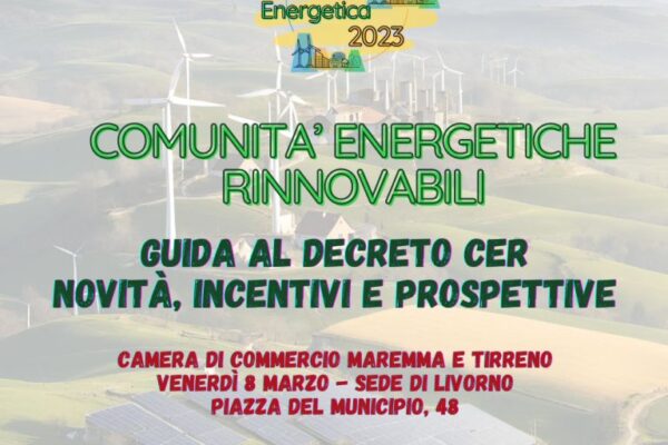 La Camera di Commercio della Maremma e del Tirreno, in collaborazione con Unioncamere Toscana, Università di Pisa e DINTEC, organizza per venerdì 8 marzo – dalle ore 10, presso la sede camerale di Livorno – la tappa locale del ciclo di eventi “Comunità Energetiche Rinnovabili: Guida al Decreto CER – Novità, Incentivi e Prospettive”, l’iniziativa del sistema camerale toscano dedicata alla presentazione del nuovo Decreto del Ministero dell’Ambiente per le Comunità Energetiche. Nel corso dell’incontro saranno approfonditi i contenuti del nuovo Decreto del MASE, che ha posto fine al regime transitorio e dato il via al nuovo quadro regolatorio sulle Comunità Energetiche Rinnovabili.