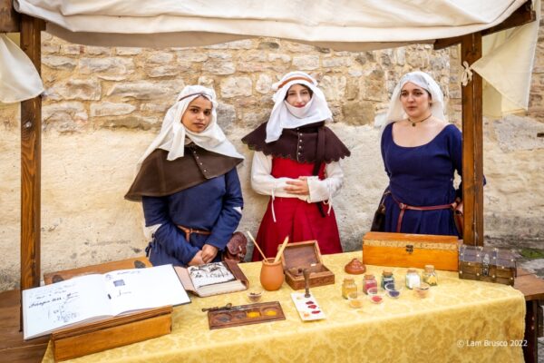 Tutto questo contornato da bandiere che sventolano in aria e tamburi che rimbombano nelle gallerie della Fortezza, cavalli i cui zoccoli faranno tremare il terreno, mercanti e artigiani che cercheranno di accaparrarsi le simpatie dell’avventore per vendergli la propria merce, banchi didattici per i più piccoli che vedranno all’opera tanti maestri che insegneranno loro perdute arti.