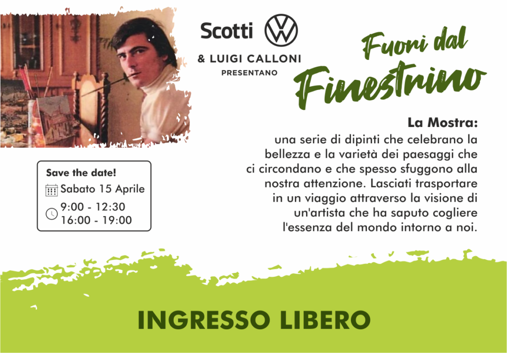 Sabato 15 Aprile, il salone di Scotti Volkswagen in Via dell’Artigianato a Livorno, si trasformerà per un giorno in una vera e propria galleria d’arte, ospitando la mostra di dipinti intitolata “Fuori dal Finestrino“. L’esposizione celebrerà la bellezza dei paesaggi intorno a noi e presenterà le opere realizzate dall’artista livornese Luigi Calloni.