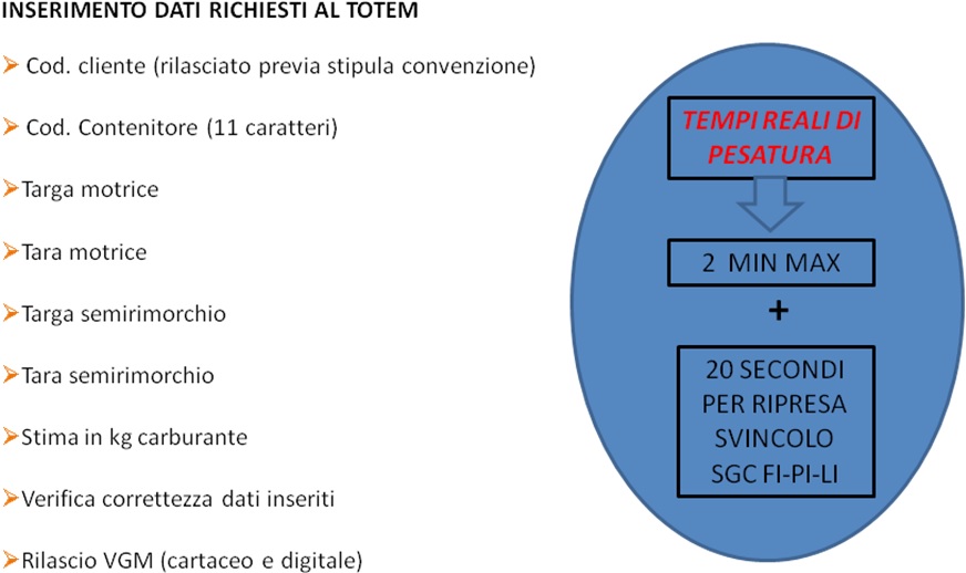 L’impianto di pesa di circa 3.000 mq., ubicato sull’anello di percorrenza a senso unico di marcia del centro direzionale, prossimo all’area di servizio oil e all’area ristorante, tra l’officina di riparazione mezzi pesanti e la rampa di uscita dello svincolo ovest sulla SGC Fi-Pi-Li , è aperto h 24 sette giorni su sette con assistenza di nostro personaleLa piattaforma pesa composta da due stadere a ponte, con relative corsie di accumulo mezzi pesanti, ed una viabilità di uscita che si raccorda alla rotatoria di ingresso sullo svincolo interporto ovest della SGC Fi-Pi-Li: