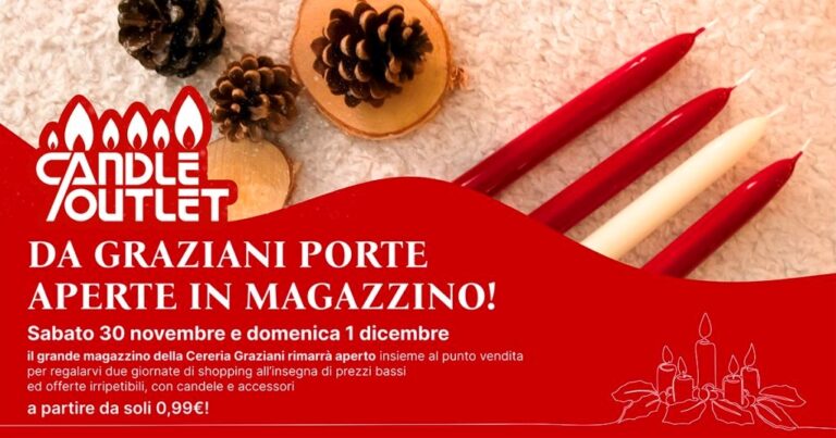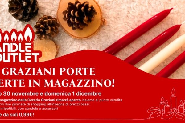 La storica Cereria Graziani apre le porte del suo magazzino per un evento speciale che promette di incantare appassionati di candele e curiosi alla ricerca di prodotti unici. L’evento, denominato “Magazzino Aperto”, si terrà sabato 30 novembre dalle 10:00 alle 13:00 e dalle 15:00 alle 19:00 e domenica 1° dicembre dalle 15:00 alle 19:00.