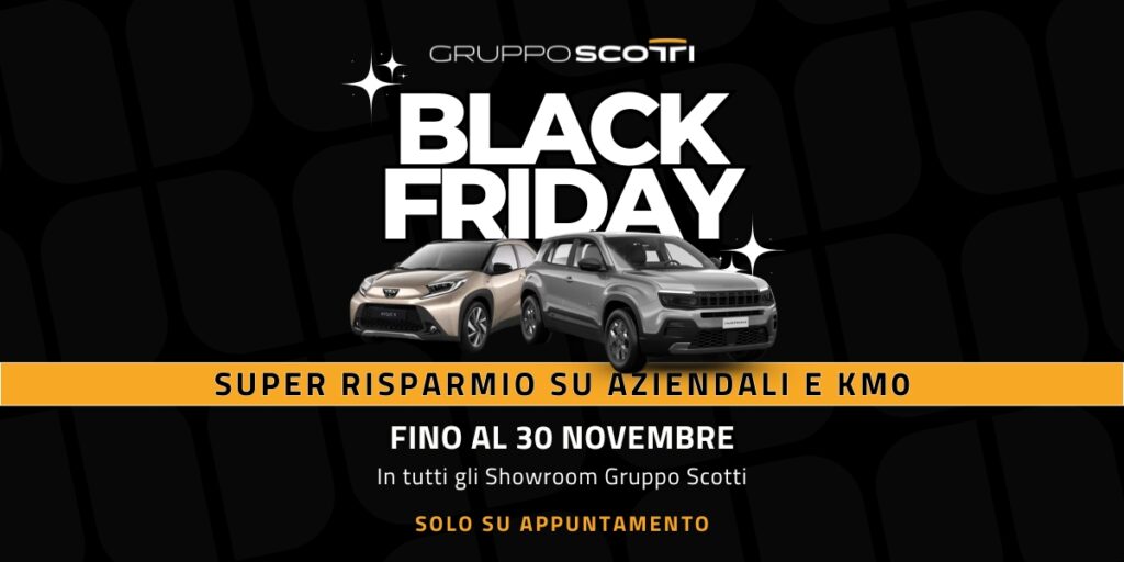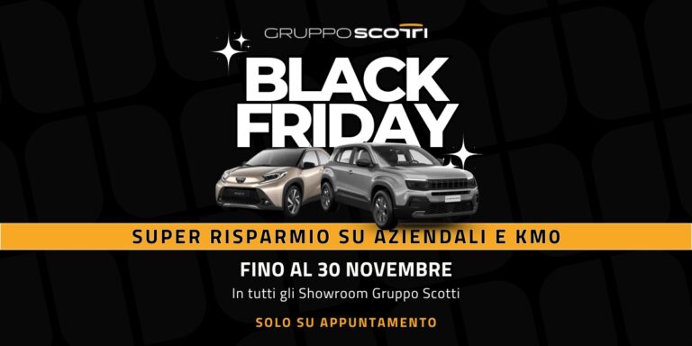 Novembre è il mese delle offerte più attese dell’anno e Gruppo Scotti celebra il Black Friday con una proposta davvero imperdibile: fino al 30 novembre sarà possibile approfittare di super risparmi su una selezione esclusiva di vetture KM0 e aziendali multimarca.