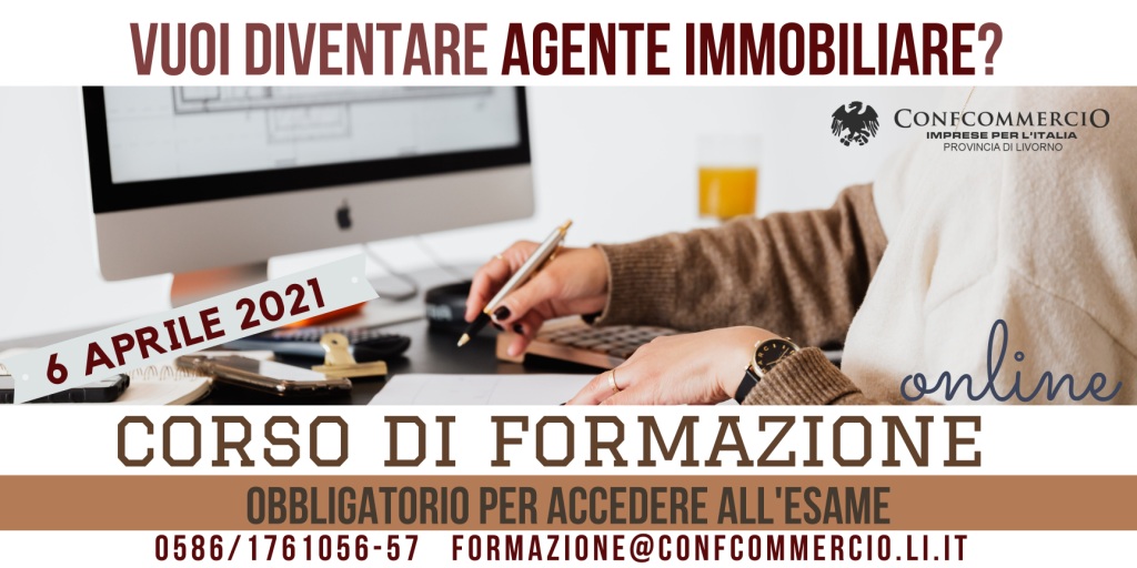 elementi di diritto civile, elementi di diritto tributario. Approfondimenti dell’area tecnico merceologica: nozioni di estimo e di urbanistica, diritto tributario, civile e commerciale. Per accedere al corso è necessario il possesso del diploma di scuola media superiore, compreso il diploma triennale di scuola professionale. Il corso si terrà il lunedì, martedì e giovedì dalle 18:00 alle 22:00 e sarà interamente online, così come previsto dalle recenti norme anticontagio della Regione Toscana. Il corso è a numero chiuso. Per informazioni, prezzi, iscrizioni, consigliamo agli interessati di contattare immediatamente Confcommercio ai seguenti recapiti: