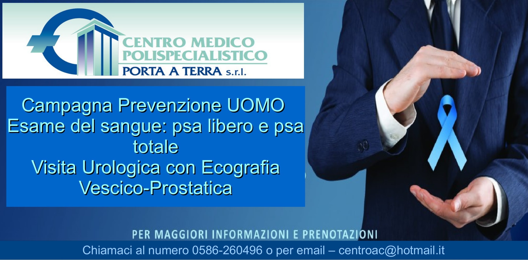 informazione pubblicitaria. Dal mese di marzo il Centro Medico Polispecialistico Porta a Terra mette al centro la prevenzione con esami, visite specialistiche e consulenze. INFO: 0586/26.04.96, mail: [email protected]