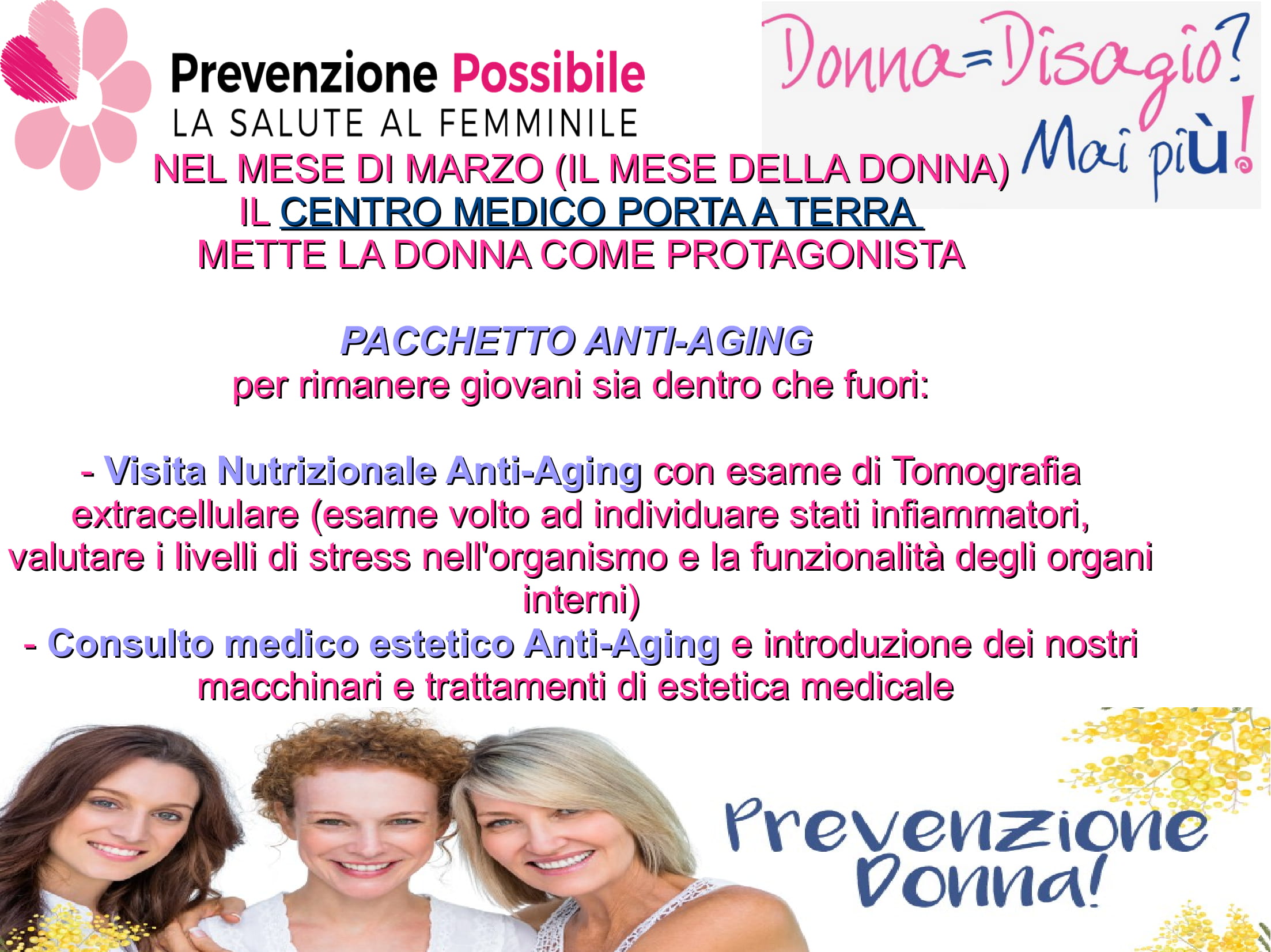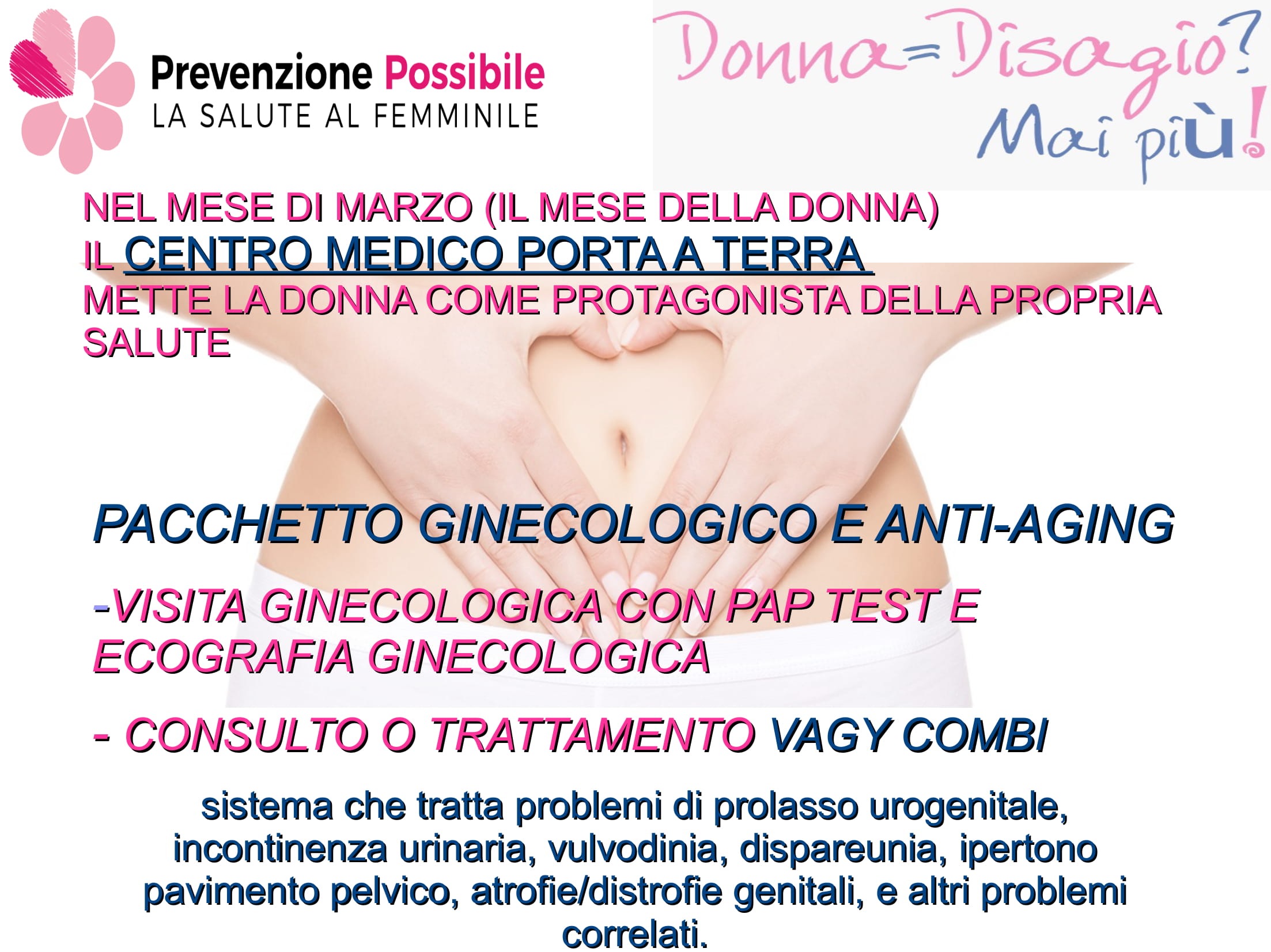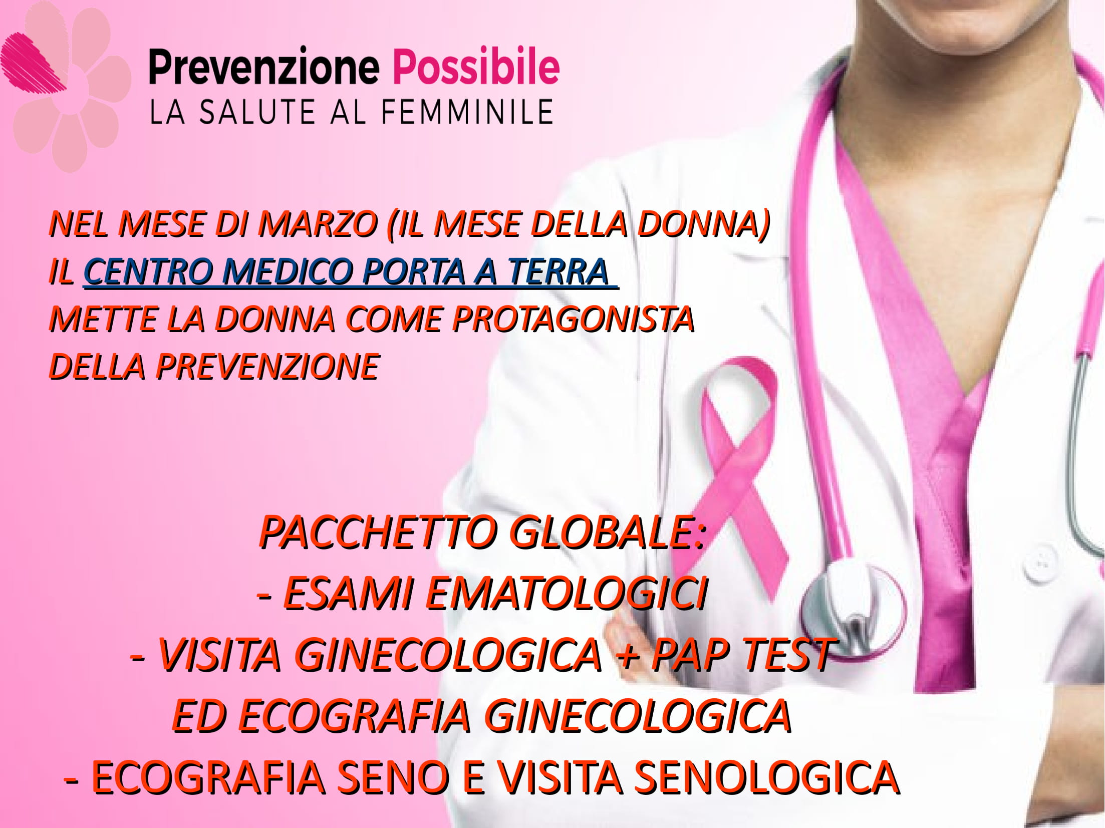 Dal mese di marzo il Centro Medico Polispecialistico Porta a Terra mette al centro la prevenzione della donna con pacchetti mirati. Il pacchetto globale ginecologico comprende: