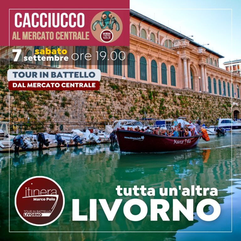 Sabato 7 settembre ore 19 (ritrovo ore 18.45 al Banco Cultura a Peso nella Sala delle Gabbrigiane) tour in battello con partenza dal Mercato Centrale. Allo sbarco, chi prenoterà la cena potrà gustare il cacciucco all’osteria ‘’Alle Vettovaglie’’. Prenotazione obbligatoria entro sabato 7 settembre alle ore 13 al 348.7382094