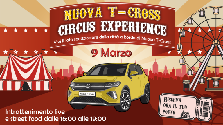 La Concessionaria si trasformerà in un autentico circo vivente, con giocolieri e artisti circensi che renderanno l’atmosfera festosa e coinvolgente per te e la tua famiglia. Ma le sorprese non finiscono qui! Gli amanti del cibo saranno deliziati da un’ampia selezione di street food dolce e salato: popcorn, hot dog, zucchero filato, marshmallow, caramelle e bevande. Lo sappiamo, non sempre la scelta più salutare è la più divertente, ma per la Nuova T-Cross, un piccolo “sgarro” è d’obbligo! L’evento offrirà anche l’opportunità di immortalare momenti indimenticabili a bordo della Nuova T-Cross con foto a tema e travestimenti. Un’esperienza unica che catturerà l’essenza della tua giornata e renderà questo sabato davvero speciale per tutta la tua famiglia. Per garantirti un posto in questa avventura unica, ti invitiamo a registrare la tua presenza cliccando qui: https://bit.ly/registrazione-evento-nuova-t-cross