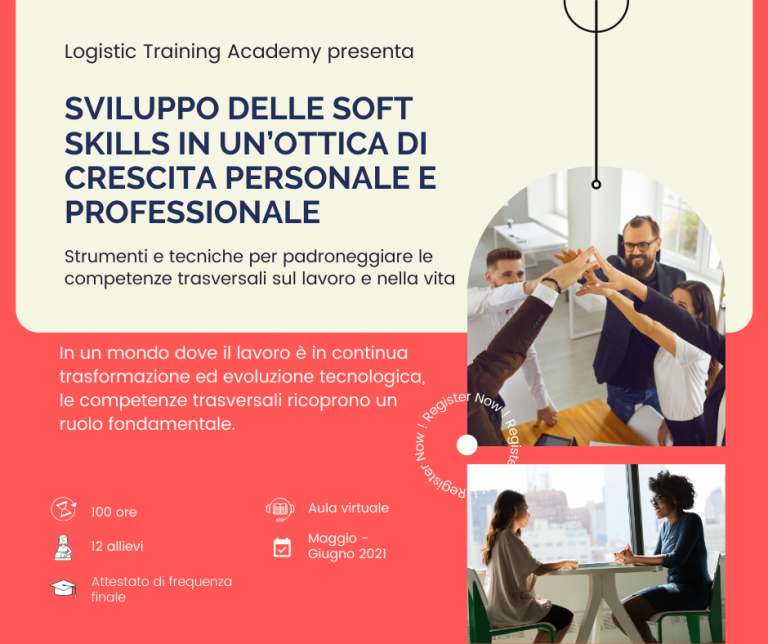 Logistic Training Academy, Ente di Formazione accreditato Forma.temp, sta promuovendo il corso di “Sviluppo delle soft skills in un’ottica di crescita personale e professionale” finanziato dal Fondo Forma.Temp (www.formatemp.it/). In un mondo dove il lavoro è in continua trasformazione ed evoluzione tecnologica, le competenze trasversali (soft skills) ricoprono un ruolo fondamentale. Infatti, sempre più aziende cercano profili professionali in possesso di spiccate competenze trasversali quali leadership, negoziazione, capacità di lavorare in gruppo, empatia e flessibilità, capacità di prendere decisioni sotto pressione e in momenti difficili, delega e consapevolezza organizzativa. Questo percorso formativo si propone di accompagnare i partecipanti in un processo di sviluppo delle competenze emotive, sociali e cognitive per conseguire i propri obiettivi professionali e personali. Il percorso è rivolto a 12 allievi che intendono migliorare e approfondire le proprie competenze trasversali di base. I destinatari sono candidati a missione di lavoro in somministrazione (in stato di disoccupazione) iscritti e selezionati da Intempo SPA, in qualità di Soggetto Promotore Apl e le attività si svolgeranno a distanza su piattaforma telematica dedicata nel periodo tra maggio e giugno 2021. Le attività si svolgeranno a distanza su piattaforma telematica dedicata nel periodo tra maggio e giugno 2021 per una durata complessiva di 100 ore di formazione. Le lezioni si svolgeranno dal lunedì al venerdì prevedendo incontri da 3-4 ore ciascuno alternandosi tra mattina e pomeriggio.